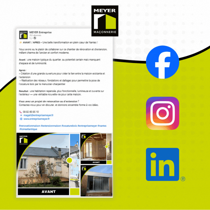 Meyer Entreprise : élaboration d’un planning éditorial et création de publications pour les réseaux sociaux tels que LinkedIn, Facebook et Instagram